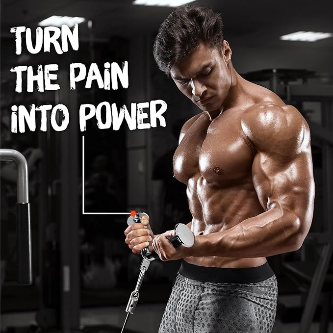 • RUBBER, ANTI-SLIP HANDLE AND FLAT KNOBS: The textured knurling handles on this tricep pull down attachment ensure a strong, firm grip, while the chrome finish minimize corrosion and rust for any straight bar or tricep v bar cable attachment.