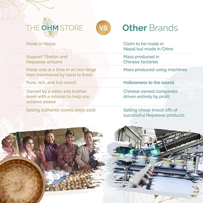 • AUTHENTIC HAND HAMMERED TIBETAN SINGING BOWL SET — This high-quality handcrafted meditation bowl set includes a wooden striker and hand sewn cushion. It is hand hammered in the Himalayan Foothills by Nepalese artisans to be as unique as you are and to create an ambience for emotional calming and healing.