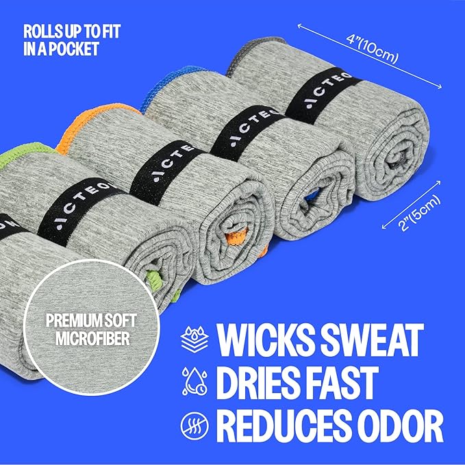 Acteon Microfiber Gym Towels 5 Pack, Quick Dry Silver ION Odor-Free Sweat Towel, Super Absorbent Fast Drying for Men & Women, Workout, Yoga, Running, Hiking, Travel – 16x30.5 Inch