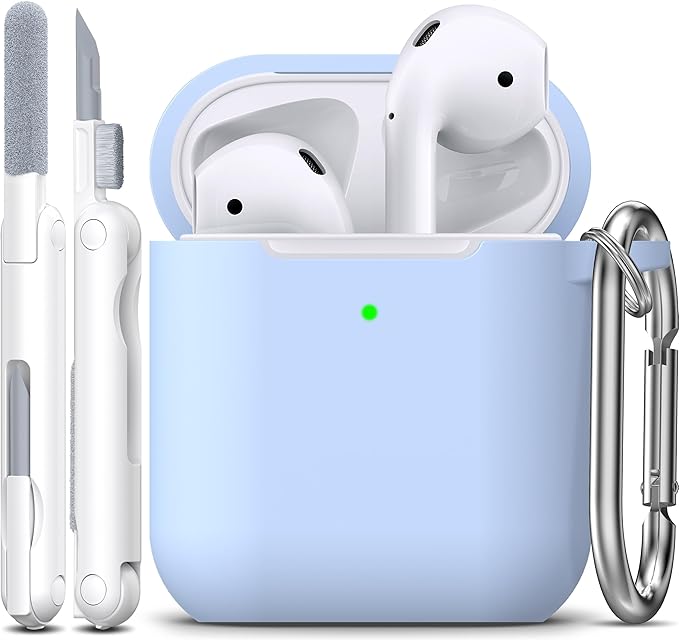 R-fun Compatible with AirPods Case Cover, Soft Silicone Protective Cover with Keychain for Women Men Compatible with Apple AirPods 2nd 1st Generation Charging Case, Front LED Visible,Sky Blue