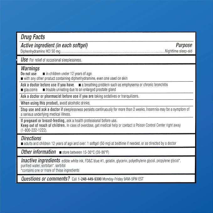 • Quality Choice Max Strength Sleep Aid Contains 50 mg of the Active ingredient Diphenhydramine HCI a Non-Habbit forming Antihistamine medication that plays a role in regulating wakefulness and sleep, promoting healthy sleep
