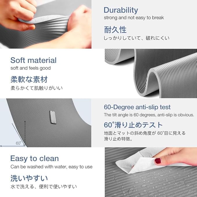 • ECO FRIENDLY and NON TOXIC: The new NBR material is soft, flexible, safe and non-toxic, and it is the healthy choice for you and the planet. (For best results unroll and air out your mat for 2 to 3 days before use)