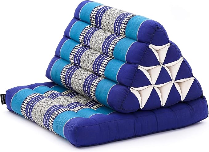 Leewadee 1-Fold Mat with Triangle Cushion – Comfortable TV Pillow, Foldable Mattress with Cushion Made of Eco-Friendly Kapok, 30 x 20 inches, Blue