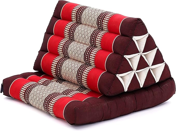 • Material: The Thai triangle pillow and the floor mat for adults is filled with natural kapok. The breathable fiber used for the floor cushions allow for a pleasant and comfortable seating position