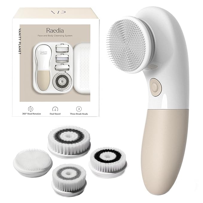 • Reveal Your Natural Glow: With 4 interchangeable brush heads (Cleansing Brush, Exfoliating Brush, Silicone Brush, and Body Brush), Raedia ensures all your skin’s needs are met. And with our dual-speed spin brush, your skin will be purified, and your natural glow revealed.