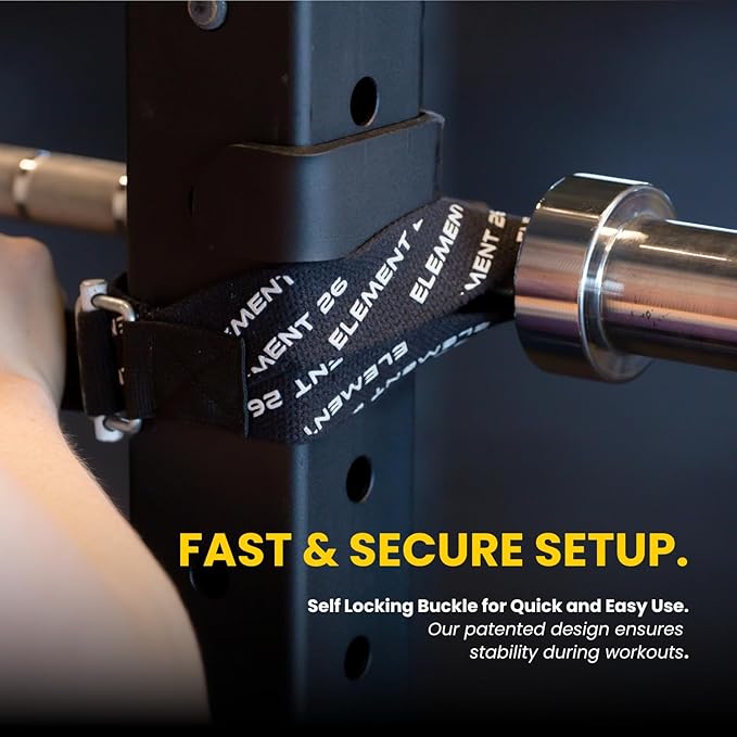 • ✅ UNLOCK FULL POTENTIAL - Unlock the full potential of your squat rack with the patent pending Element 26 BarBelts. By being able to safely lock the barbell into the rack, you open up an endless possibility of exercises on a simple squat rack!