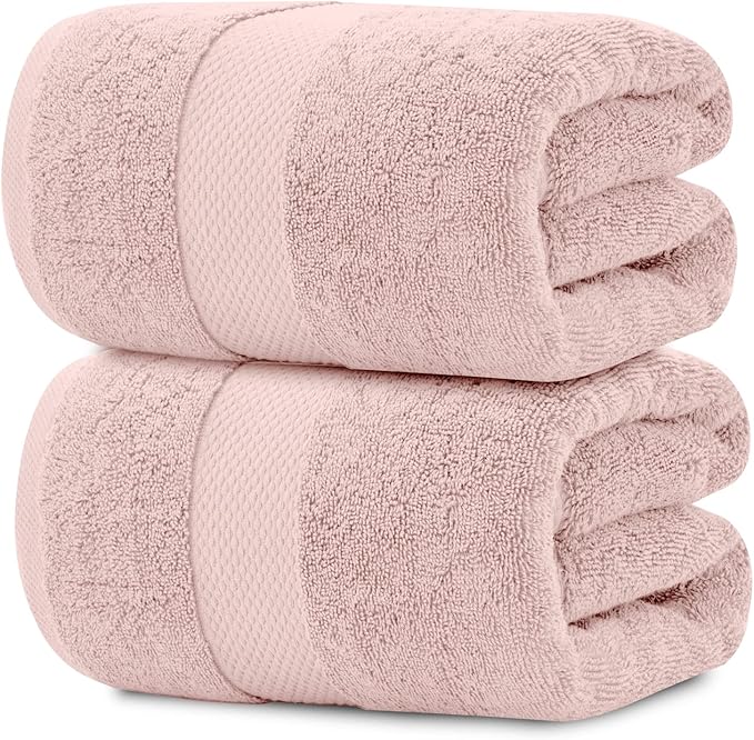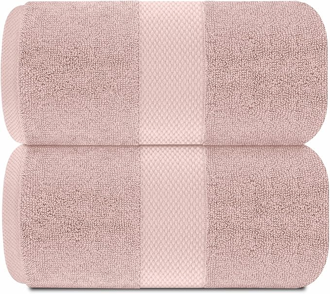 White Classic Pink 650 GSM Cotton Bath Sheet Towel - Extra Large 35x70, Luxury Soft, Highly Absorbent, Quick Dry, 2 Pack