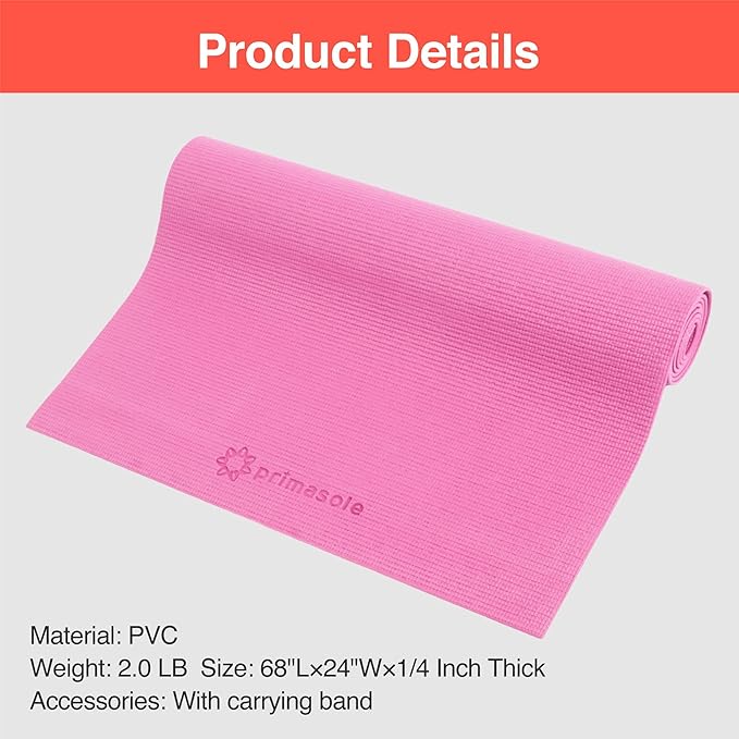 • 【LIGHTWEIGHT】 Maximal portability for easy carrying to the gym, studio, park, or beach. Mat Size is 68 × 24 inches provides comfort and stability at a total weight of only 2.0 lb. for the 1/4" mat and 3.3 lb for the 1/3" mat. Perfect for travel, beach, and yoga class.
