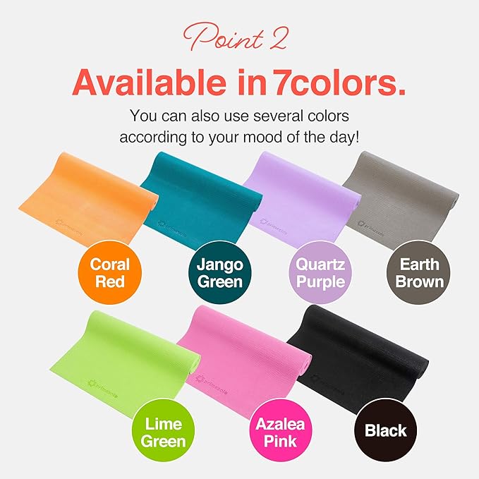 • 【CHOICE OF SEVEN COLORS】 Coordinate with any mood, style, or preference for women men, seniors. Non Slip material. Durable PVC resists peeling, fading, or tearing and wipes clean for easy everyday use. Also yoga mats are made with an embossed, cushioned, and comfortable material, so they can be used safely for a variety of yoga poses. Colors are Black, Pink, Green, Purple, Gray, Lime, Orenge.