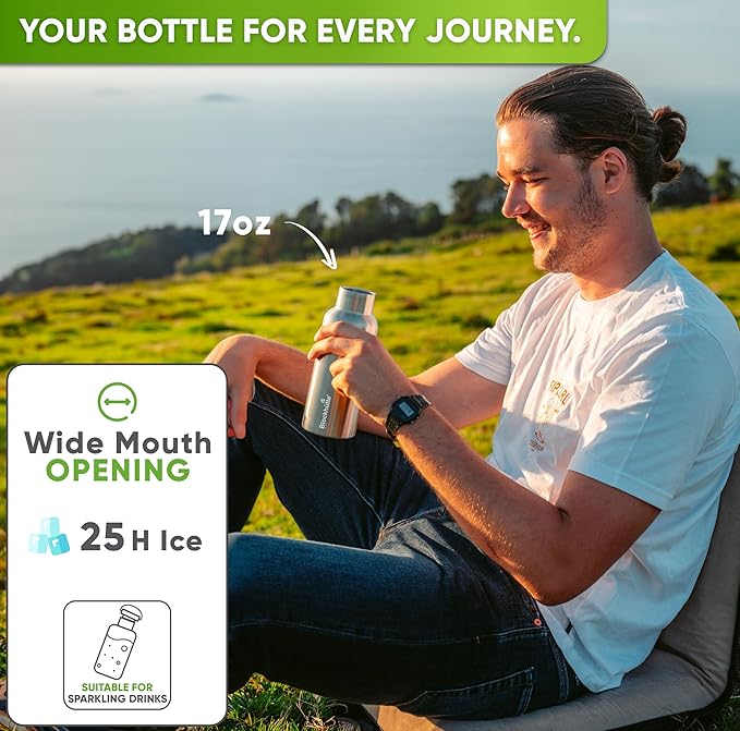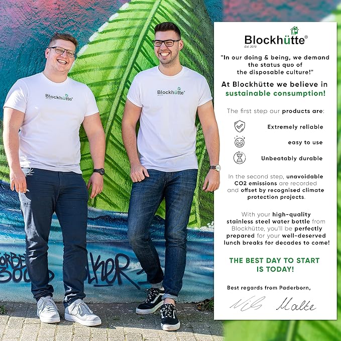 Blockhütte Vacuum Insulated Stainless Steel Water Bottle I 17 oz I Wide Mouth Metal Bottle for hot and cold drinks I BPA-Free I perfect for Travel, School I Kids, Adults, Water Canteen, Sports, flask