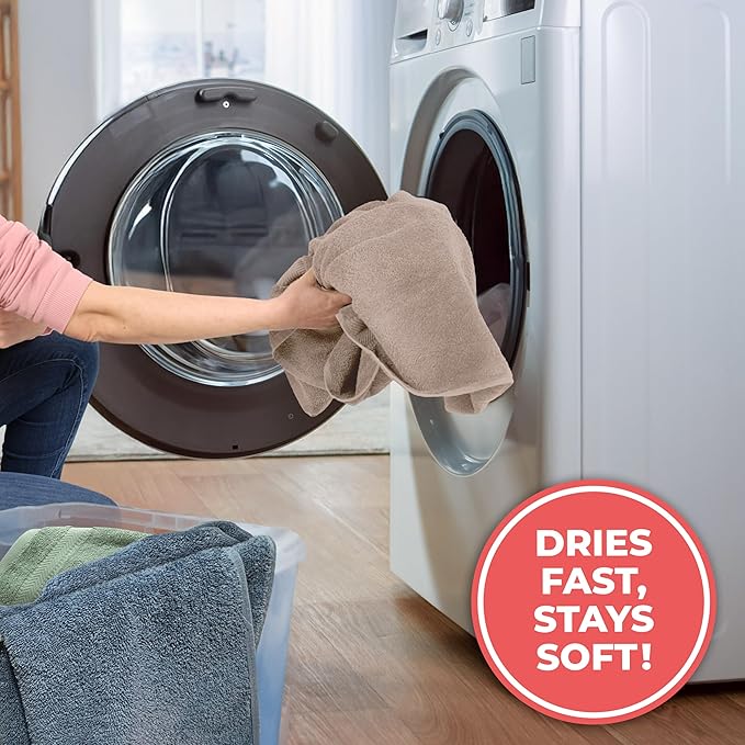 • [ SET INCLUDES ]: Our towel set includes 2 x Bath Towels (27x54 inches), 2 x Hand Towels (16x28 inches), 2 x Washcloths (13x13 inches). These sizes of our bathroom towels set are both functional and perfect for everyday usage and give your bathrooms modern look with its twelve color options. Best towels for bathroom and our bath towels set are also suitable for gym, beach, spa, hotel, travel and more.