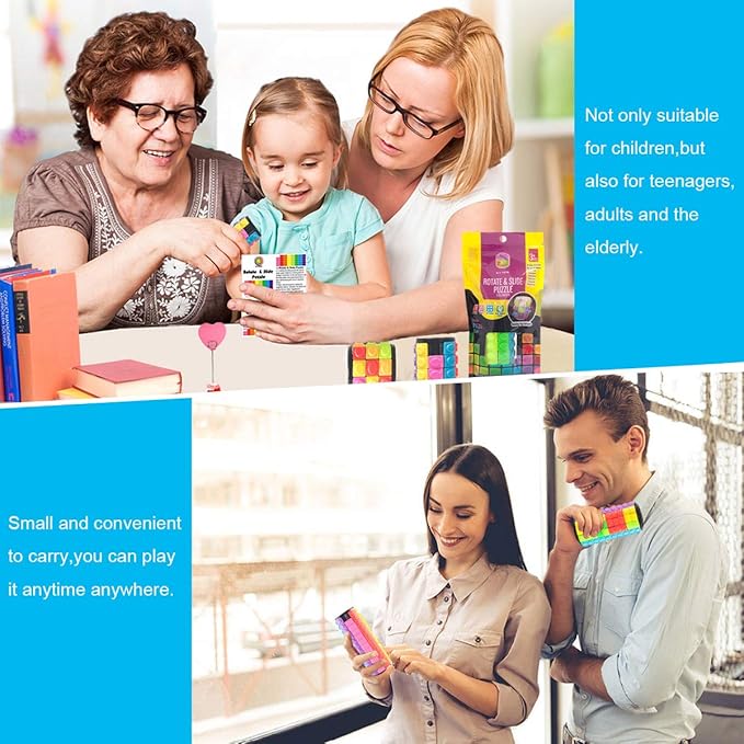 • 【 Uses 】Unlike other brain games,the patented,critically acclaimed cube puzzle is a unique toy and unique gift,it is a combination of rotating magic cube and slide puzzle,each puzzle piece can be rotated from up and down with a whole column around the axis as well as be slided left and right on a row