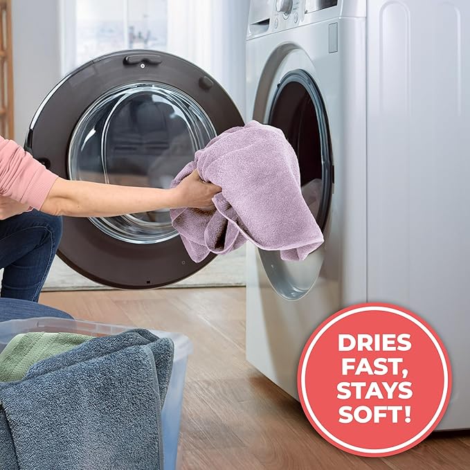 • [ SET INCLUDES ]: Our towel set includes 2 x Bath Towels (27x54 inches), 2 x Hand Towels (16x28 inches), 2 x Washcloths (13x13 inches). These sizes of our bathroom towels set are both functional and perfect for everyday usage and give your bathrooms modern look with its twelve color options. Best towels for bathroom and our bath towels set are also suitable for gym, beach, spa, hotel, travel and more.