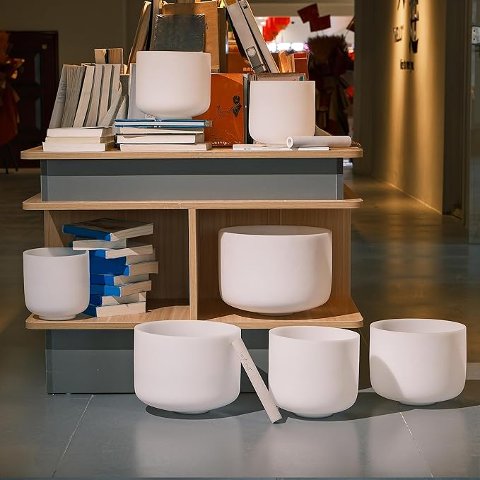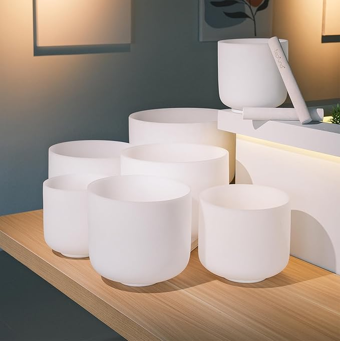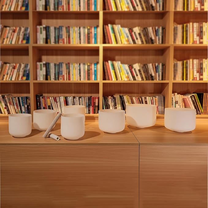 • TOPFUND Chakra Tuned Singing Bowls: Handcrafted with precision grinding and polishing. Tuned for therapeutic resonance. Includes 7 crystal singing bowls: 12"C,11"D,10"E,9"F,8"G,7"A,6"BCrafted from the highest quality quartz crystals. Includes a sponge-padded heavy duty carrying case. Protected in a suede bundle bag for sound therapy meditation. Bundle pocket holds singing bowl mallet, suede striker, and O-ring. Instruction paper for sound bowl healing included.