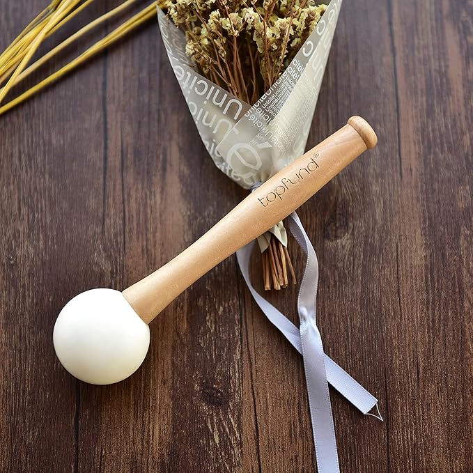 • Steps to play: Use the singing bowl in a quiet calm space. For a large singing bowl, place the O-ring on a flat surface and set your bowl on it. For smaller bowls, it may be preferable to place them in hand to hear them better. Gently tap the outer rim of the bowl and glide the mallet around the outer edge. Gliding with constant, firm pressure to continue the ringing sound. Practice a few times to achieve perfect sound. Always use light pressure while taping the quartz bowl.