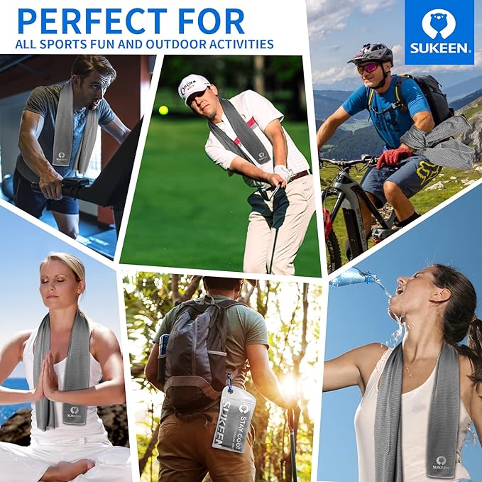 • MULTIPURPOSE SPORTS TOWEL: It's perfect for sports fans into golf, swimming, football, workout, gym and fitness, also works for fever or headache therapy, heatstroke prevention, sunscreen protection, cooling while absorbing. Keep yourself cool during hot summer days, workout sessions, outdoor adventures or when someone has a migraine. If you are sweating a lot, rinse the 'salty water' out from time to time. Salt reduces evaporation/cooling rate.