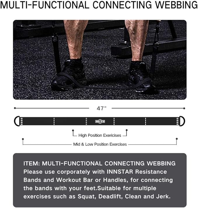 • ★10” Resistance Band (No Metal Buckle) is for INNSTAR Bench Press Equipment ONLY, 12.6” Resistance Band (With Metal Buckle) is for low position exercise such as deadlift, 21” Resistance Band (With Metal Buckle) is for high position exercise such as Squat and clean and jerk. 12.6” and 21” bands should use corporately with INNSTAR Workout Handles or Bar.