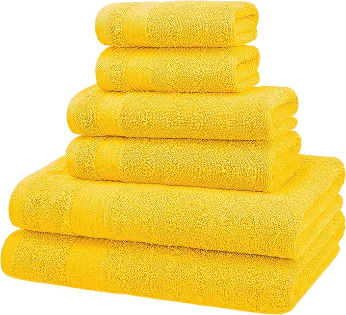 American Veteran Towel, 6 Piece Towel Set for Bathroom, 100% Cotton Turkish Bathroom Towels, 2 Bath Towels 2 Hand Towels 2 Washcloths, Yellow