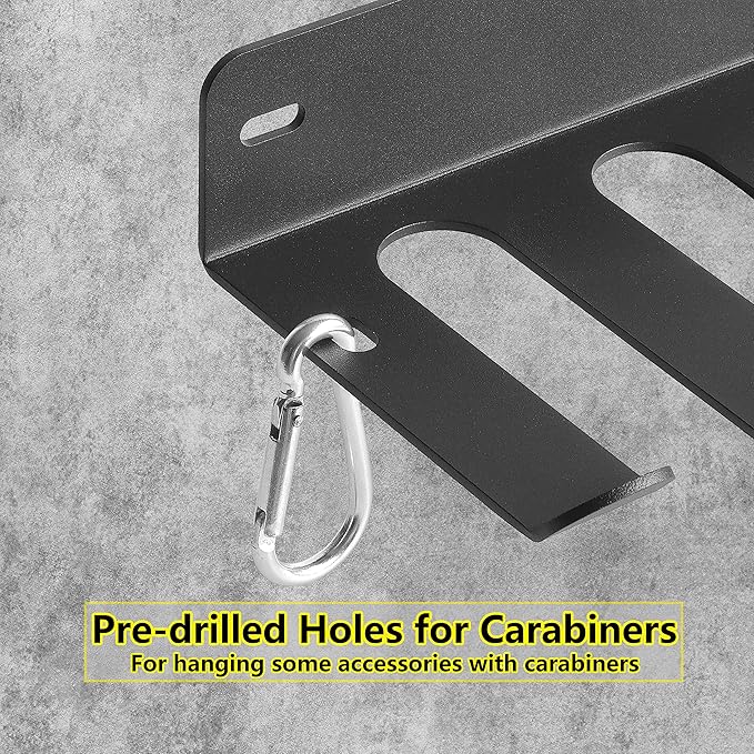 • Practical Design--The total length of the product is 17", and 8 prongs are provided. The upward sloping design of the end of the prongs can effectively prevent the hanging items from falling off. Two new carabiners have been added for hanging items that are inconvenient to place on the prongs