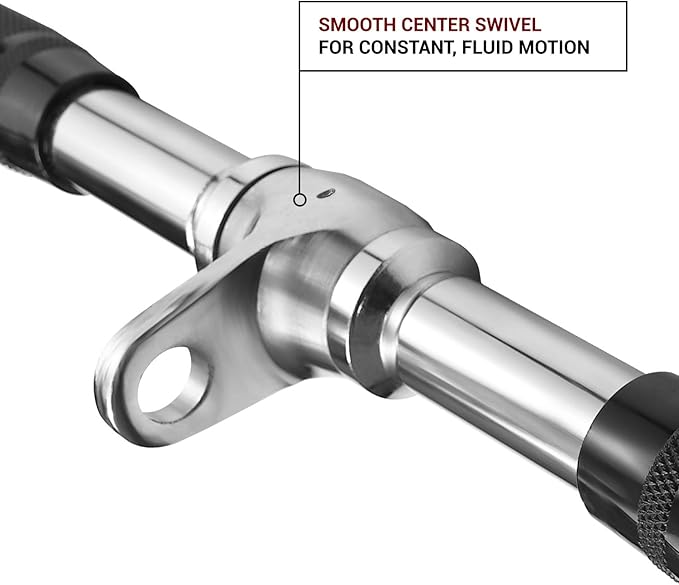 • Rotating Steel Straight Bar (gym cable attachments): 18-inch length and 1-inch diameter, 360-degree swivel with chrome polished finish and rubber handle with textured handles to prevent from corrosion, rust and endure weight up to 880 lbs (3.800N)