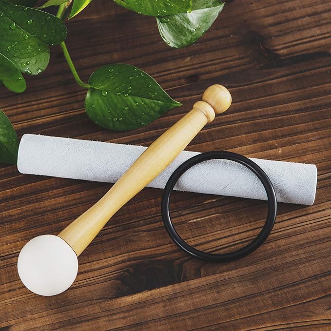 • Package includes: 1 * 8 inch wide 7 inch high white high quality crystal singing bowl, 1 * thick cowhide suede striker, 1 * rubber mallet, 1 * one O-ring, 1 * Carrying Case