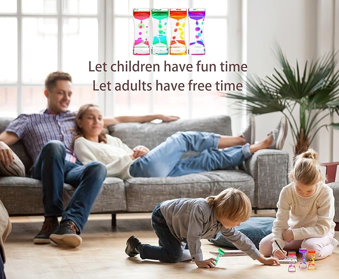 • 4. Great for Everyone: Each liquid timer contains two colors inside. The soothing colors remind you to slow down, relax, and enjoy each moment. Every order comes with 4 pack liquid motion timers, each with their own unique colors inside, giving you even more options for play! - Blue Green, Red Yellow, Blue Pink, Purple Yellow