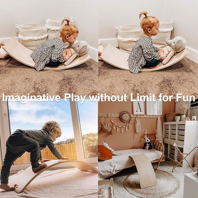 • 🎁【Unlimited Ways to Play】 As a fancy open ended toy, WOOD CITY Wobble Board is whatever you imagine it to be - a swing, a bridge, a shop, a cabin, a stepping stone, a lounge chair, a tunnel, a bridge, and so on, which helps kids turn what they imagine into reality.