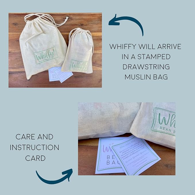 • Your Whiffy will arrive in a reusable drawstring bag with instruction card. Drawstring bag may be used to store your microwavable heating pad and/or ice pack.