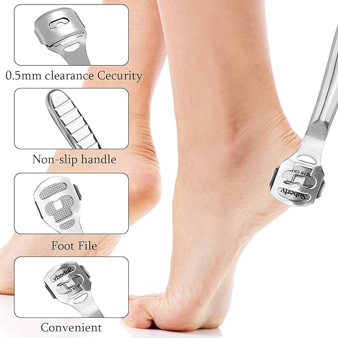 • Wide Application: This foot razor is suitable for both professional and home pedicures, helps to remove hard, cracked, dead skin, heel skin calluses, etc., very suitable for family and friends. Note: Not recommended for people with thin skin, keep away from children, use with care.
