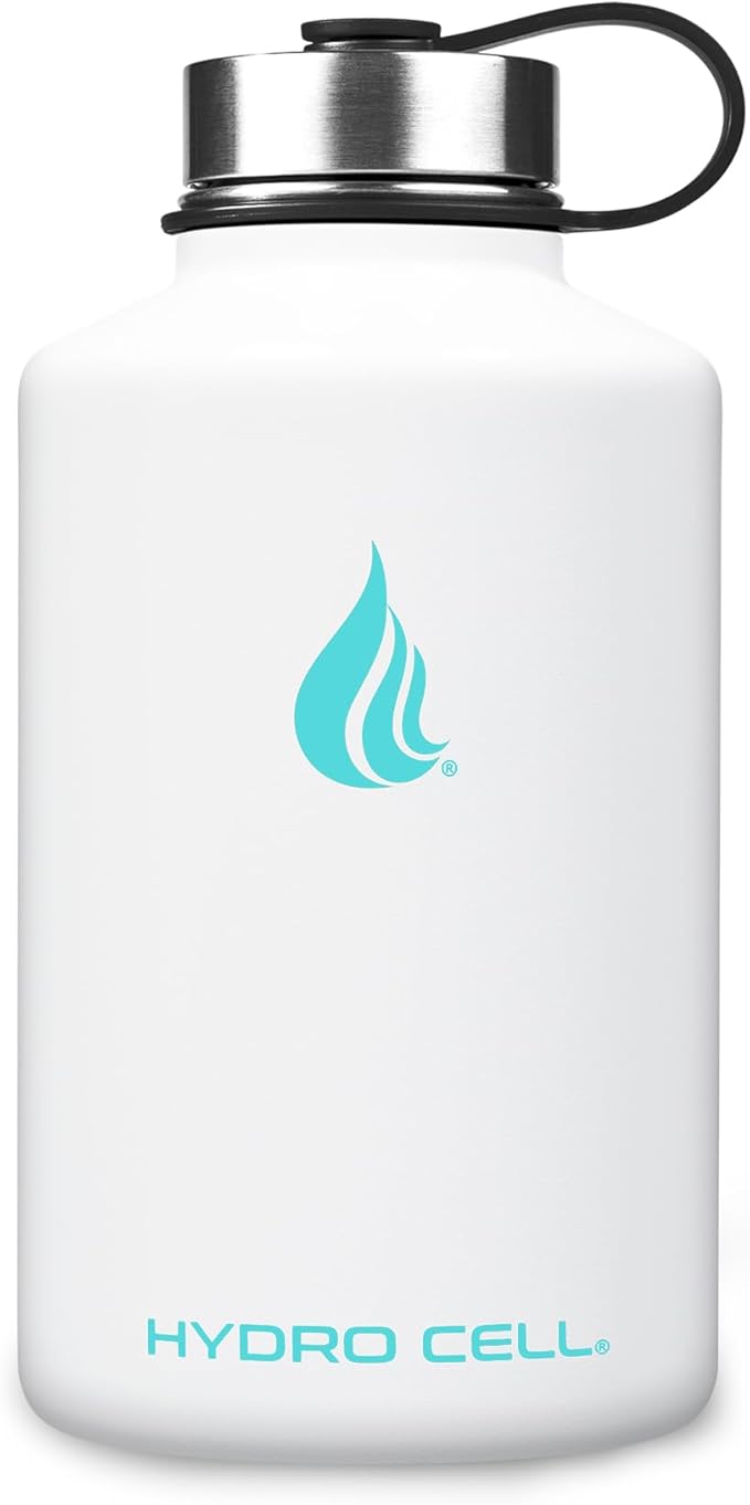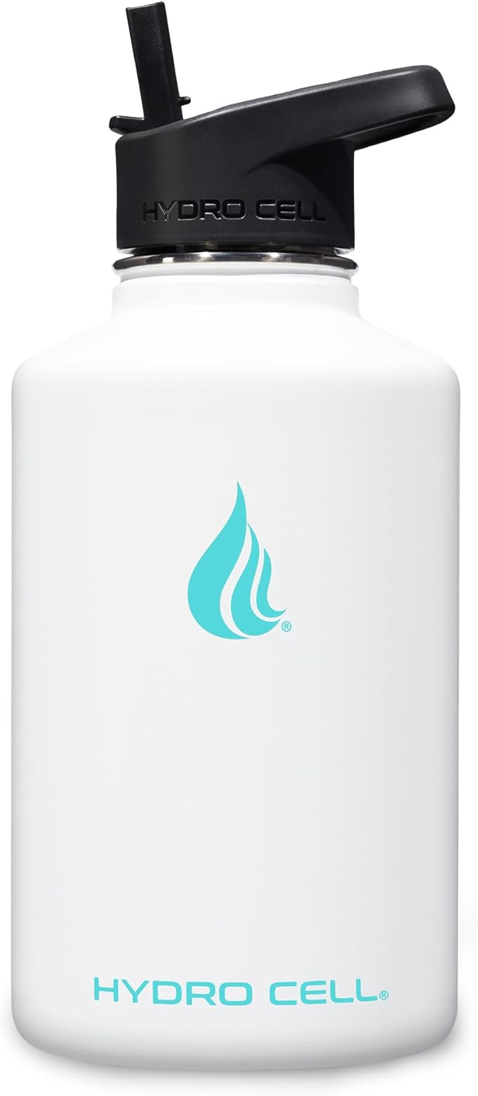 HYDRO CELL Stainless Steel Insulated Water Bottle with Straw - For Cold & Hot Drinks - Metal Vacuum Flask with Screw Cap and Modern Leakproof Sport Thermos for Adults (White 64oz)