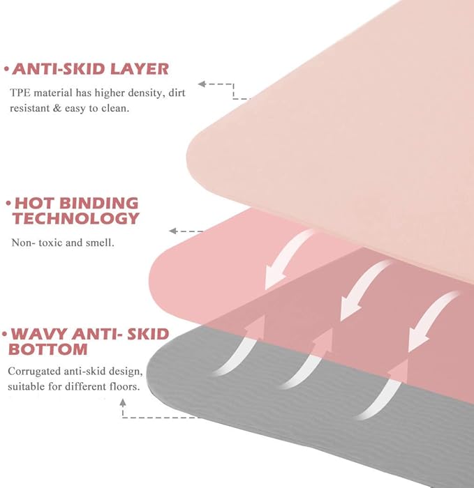 • DOUBLE NON-SLIP DESIGN - This workout mat has double-sided non-slip surfaces. Wavy undersides make excellent traction on the floor. It unrolls pretty flat and stays put. Special textured surface prevents your hands and feet from sliding when you sweat on it.