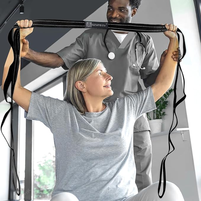 • 【BENEFIT】: Multiple hand-holds along the strap allows for progressive unassisted stretching with greater control. Use this stretch strap to prepare for daily activities, prevent injury, alleviate tightness, increase flexibility and improve range of motion.