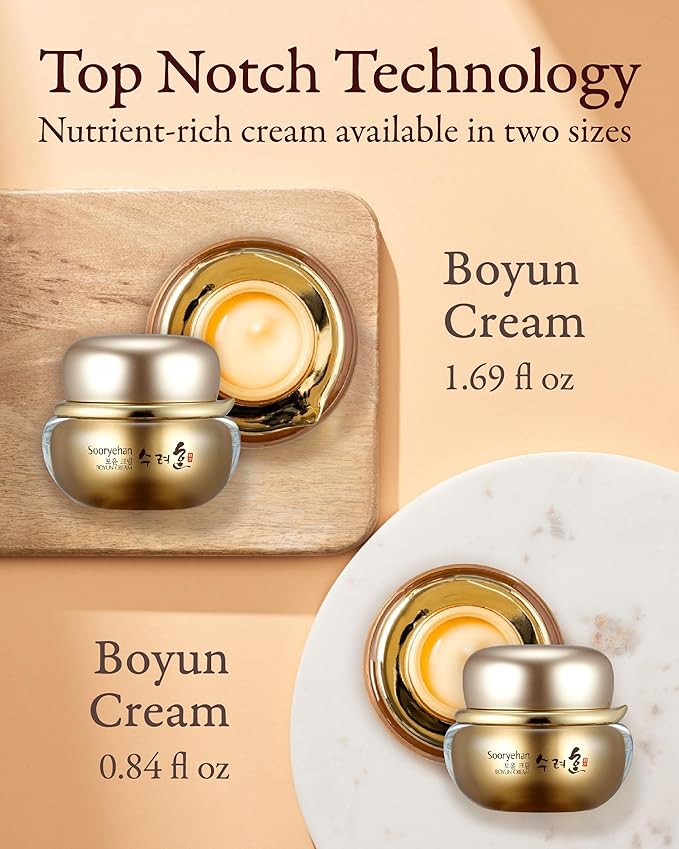• SOORYEHAN BOYUN CREAM SKINCARE SET (155ml/5.2fl oz) - Elevate your skincare experience with our deluxe set, showcasing the lavish Boyun Cream in 2 sizes (50ml/1.7fl oz + 25ml/0.8fl oz). This collection also includes travel-sized versions of Boyun Emulsion (20ml/0.7fl oz), Boyun Toner (20ml/0.7fl oz), and Ginseng Cleansing Foam (40ml/1.4fl oz).