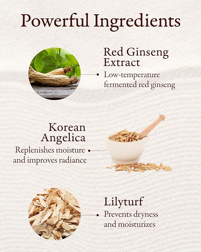 • HOLISTIC BEAUTY - Immerse yourself in the perfect blend of tradition and innovation. Our skincare set, enriched with whole ginseng and the harmonious blend of hanbang (traditional Korean medicine) ingredients in Boyun Daejodan, is meticulously crafted to address the unique needs of those seeking deep hydration, rich nourishment, and a natural solution for firm skin and to combat the signs of aging.