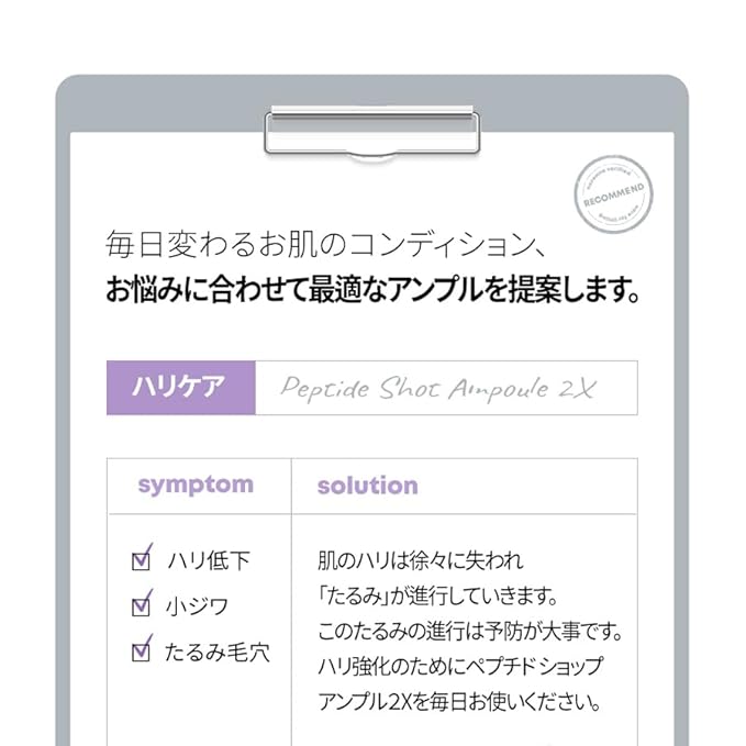 • HOW TO USE: After using toner, take an appropriate amount of Coreana Peptide Shot Serum 2X and gently spread it over the entire face for absorption. The lightweight and non-sticky texture of our face serum help maintain the pH balance and prepare it for better absorption of nutrients.