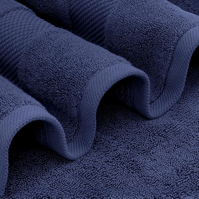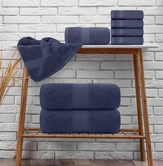 White Classic Luxury Bath Towel Set of 8 Pieces - 100% Turkish Cotton Highly Absorbent Towels for Bathroom, 2 Luxury Bath Towels 700GSM, 2 Hand Towels, 4 Washcloths, Navy