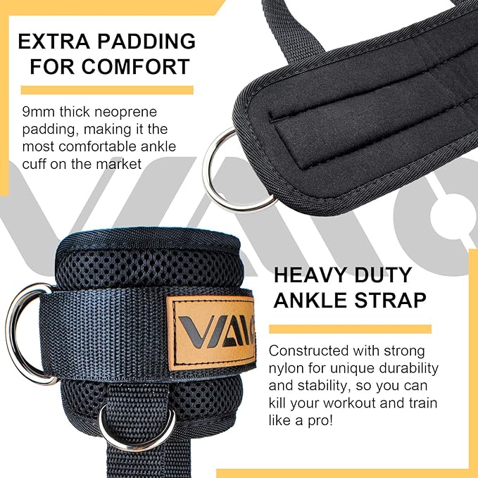 VAIIO Ankle Straps for Cable Machines,Adjustable Comfort fit Neoprene, Reinforce Double D-Ring - Premium Ankle Cuffs to Improve Abdominal Muscles, Lift The Butts, Tone The Legs for Men & Women