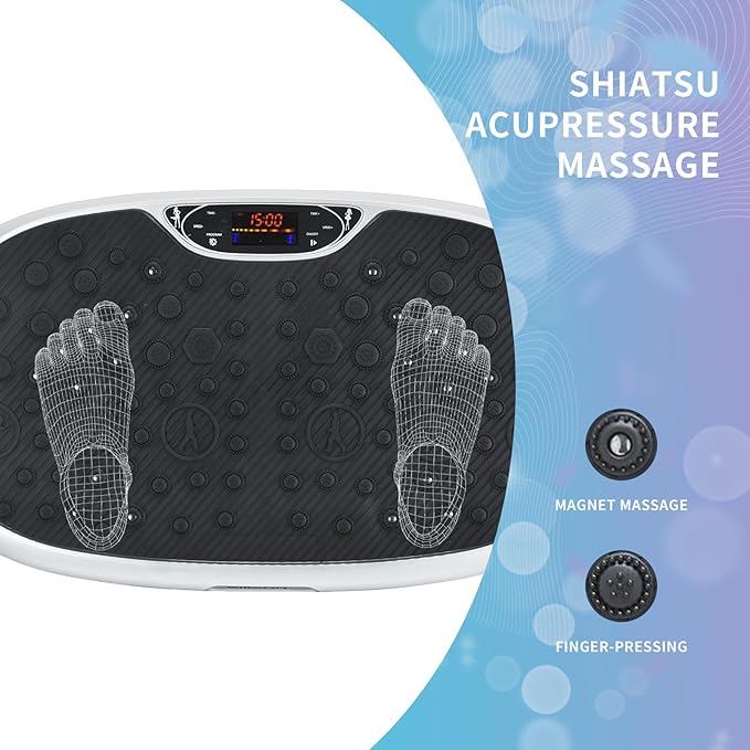 • VIBRATION PLATE WITH UNIQUE ACUPRESSURE SURFACE– Eilison OSCILLATING VIBRATION- 3D whole body vibration plate exercise machine has a unique acupressure plate surface which with the help of strong vibration from our vibration platform machine presses the pressure points on the feet which helps in relieving back pain, headache, insomnia, blood circulation, muscle & joint pain, stress, Anxiety. This workout machines helps you to release blocked energy to maintain healthy life