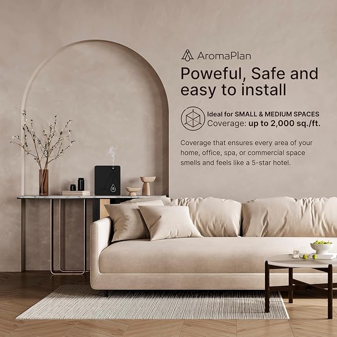 • AMAZING FRAGRANCE IN EVERY CORNER: The AromaPlan nebulizer has an incredible 1,500 Sq Ft coverage so that every area of your home, office, spa or commercial space will smell and feel like a 5-star hotel. The AromaPlan diffuser system is very user-friendly, with automatic and App control that you can schedule according to your daily needs and never waste your favorite scent again!