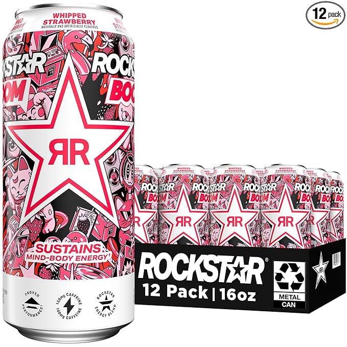 • Includes 12 (16oz) cans of Rockstar Energy Drink, Boom Whipped Strawberry​