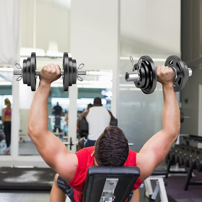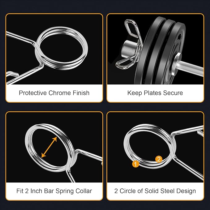 • 🏋️EASY ADJUSTMENT: Designed for 2 inches diameter plates. Each set of dumbbell bars is equipped with 4 solid spring collars. You will be able to add or remove weights quickly and easily