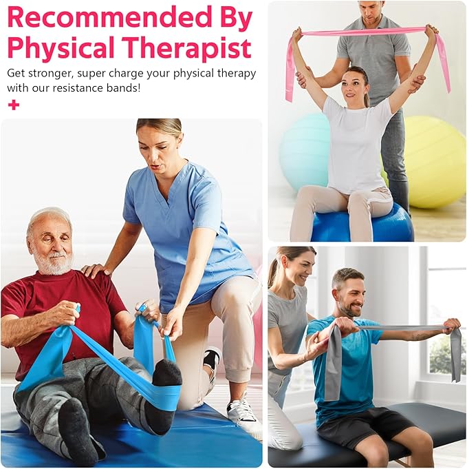 Resistance Bands for Working Out, Exercise Bands for Physical Therapy, Stretch, Recovery, Pilates, Rehab, Strength Training and Yoga Starter Set