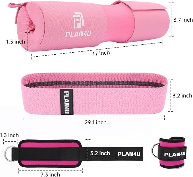 • 🥇Mufti-function Training Kit: the package includes Plan4U barbell shoulder pad guard, a pair of ankle guard straps that are suitable for both men and women, and a good stretch hip belt. The bar bell pad set is suitable for 1.0-1.1 inch (25-28 mm) rod and 1.0-1.1" Smith rod, P90x, Cross-fit, Yoga, Pilates, etc., and mufti-function and efficient in training of abdominal, buttocks, quadriceps, hamstrings, and calf muscles, suitable for strength improvement or shaping.