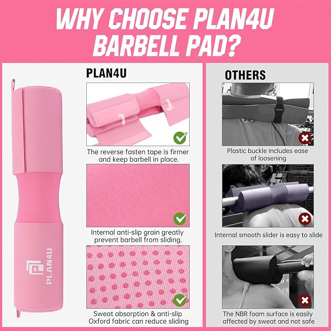 • 💦Comfortable Fabric & Thickened Foam Pad: Constructed with special Oxford and ammonia fabric, Plan4U weight pad for bar is soft to the skin without irritation, anti-slip and sweat absorption. It's durable to be used repeatedly without deform, and easy to clean. Size: 17”*3.7”
