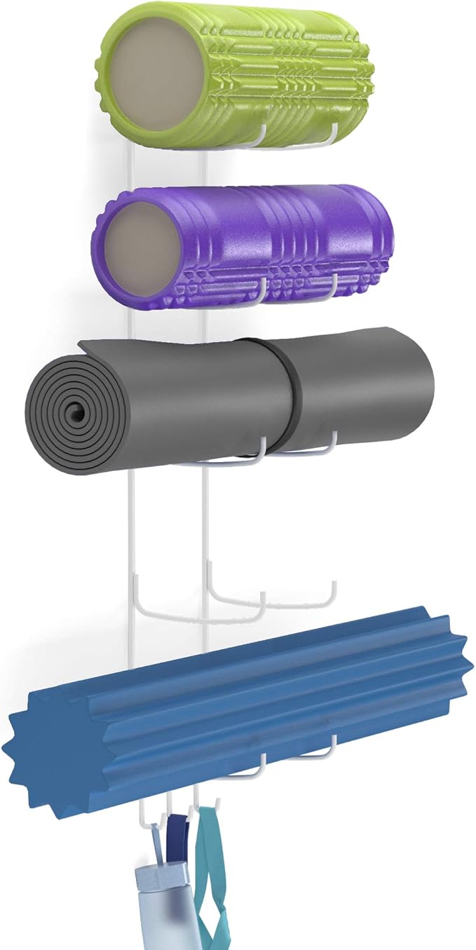 • Sturdy Design: Heavy-duty designed Guru yoga mat holder can store your best yoga mats including your thick yoga mat and even full size 6" diameter foam rollers safely! Guru hanging organizer is also great for yoga blanket, jump ropes with its exercise gear hooks.