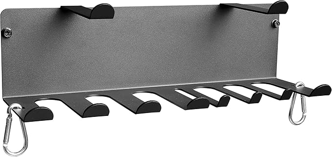 • The angled lip on the end can hold exercise equipment in place. Easily hang lifting belts, chains, jump ropes, resistance bands, gym bags, large loop bands, stretch straps, suspension straps and any other exercise tools