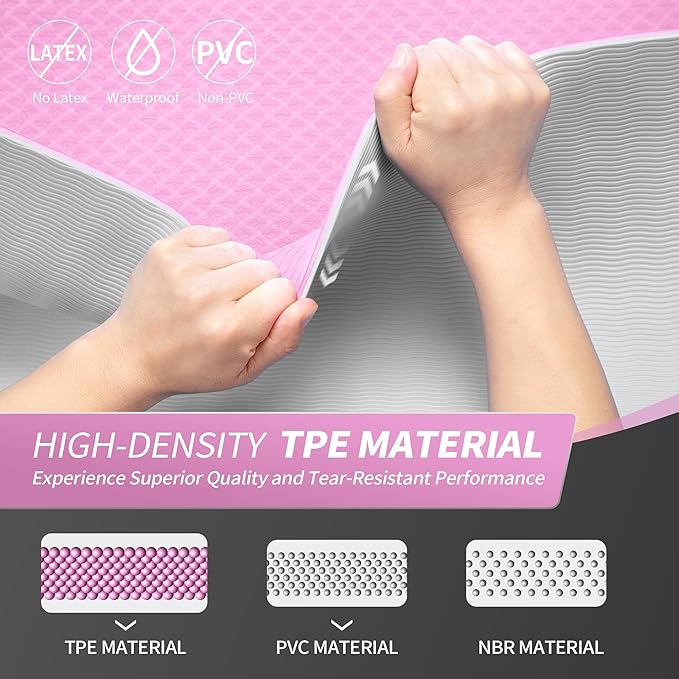 • Comfort and Cushioning: high-density and soft TPE material boosts sufficient cushioning and shock-absorbing features; this yoga mat will effectively protect your body from discomfort and reduce your joint pressure; offer a solid and stable base for an unparalleled workout experience