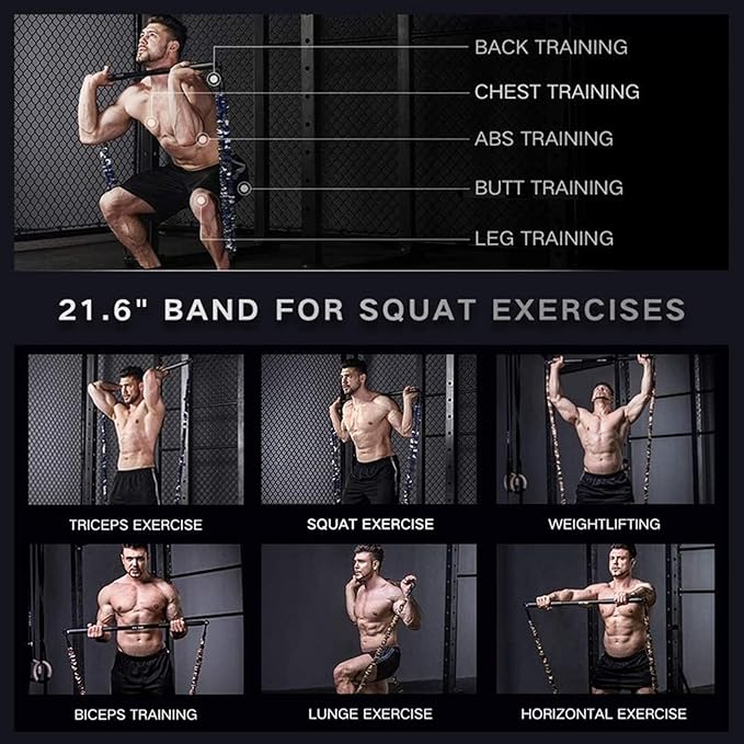 • ★10” Resistance Band (No Metal Buckle) is for INNSTAR Bench Press Equipment ONLY, 12.6” Resistance Band (With Metal Buckle) is for low position exercise such as deadlift, 21” Resistance Band (With Metal Buckle) is for high position exercise such as Squat and clean and jerk. 12.6” and 21” bands should use corporately with INNSTAR Workout Handles or Bar.