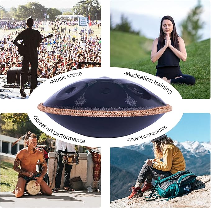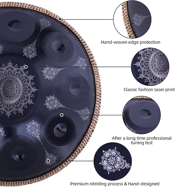 • 3. Precious Excellent:As the manufacturer of handpan,it's our honor to provide premium hand drum for handpan lovers,we have also been working hard.As we all know,handpan is a very precious musical instrument,and it's also a very beautiful gift with a wonderful memory Meaning,very suitable for Christmas,Valentine's Day