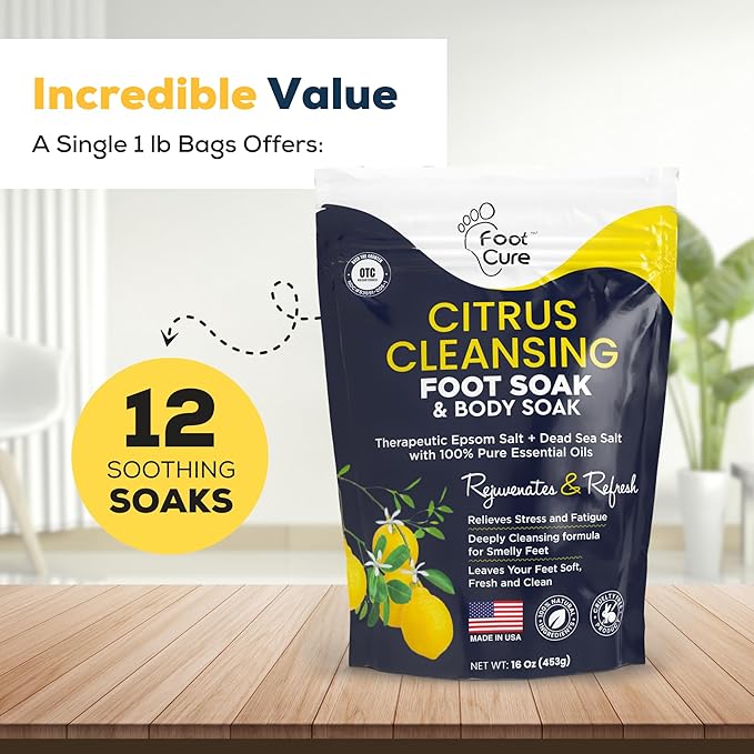 • FOR SOOTHED, MOISTURIZED, DEEPLY CLEANSED FEET: This moisturizing cleansing soak with Epsom salts helps refresh and rejuvenate tired feet for a more relaxed and well-rested feel. Plus, the deep cleansing action of citrus helps eliminate foot odor, soften calluses, and remove dead skin.